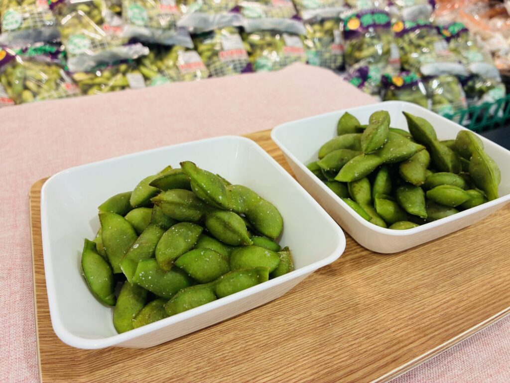 紫ずきんは通常の枝豆に比べて、一粒一粒が大ぶりで濃厚な味わいが特徴でモチモチした食感でコクがあるため、今回の試食販売でも一度食べたら皆さんすぐに感動され、説明不要で即購入される方が大変多くおられました。