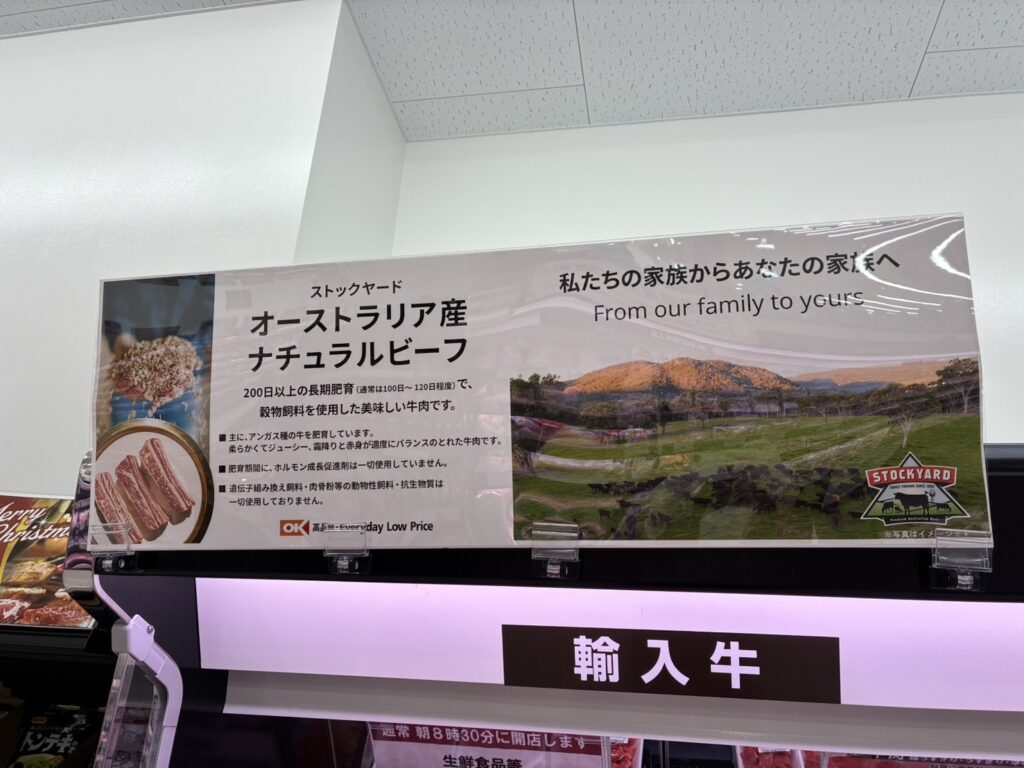 話は変わりますが、今回は寒い時期には消費が高くなる輸入牛肉の販売でディスカウントスーパーのOK様で販売させていただきました。