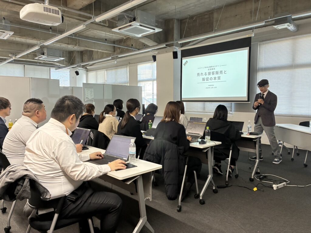 販売研修をやりながら、接客スキルだけでなく「脳みそのブランドチェンジ」も同時に進めていってもらえればと思っています。
